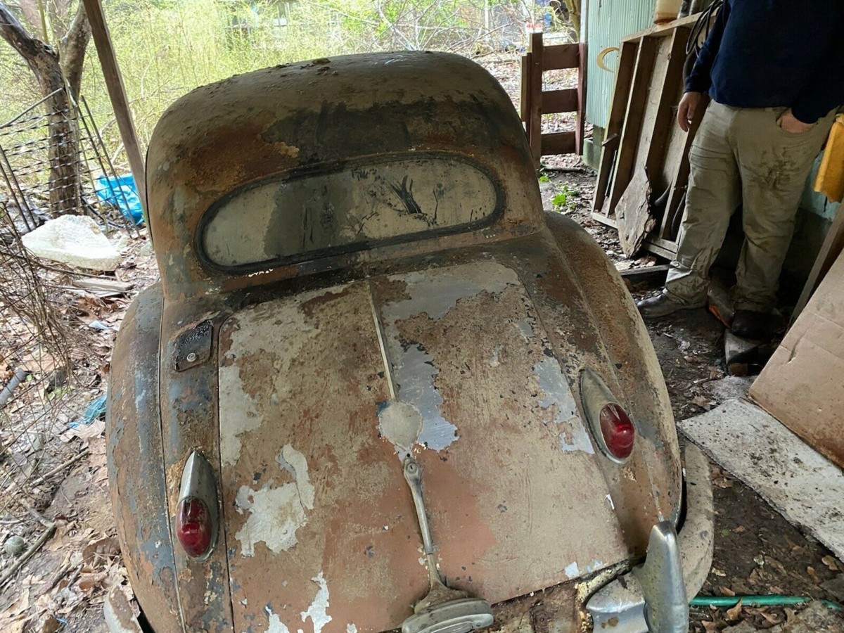 “Whoo boy!” The gentleman wearing gloves says it all. What component of a restorers health is going to be compromised tending to this parting out or recommission.? It’s almost ready to return to the earth from where it originated from. Simply not worth the effort, all said and done, although I understand the sellers dream of its value, in consideration of the fact, someone will love it. Maybe….