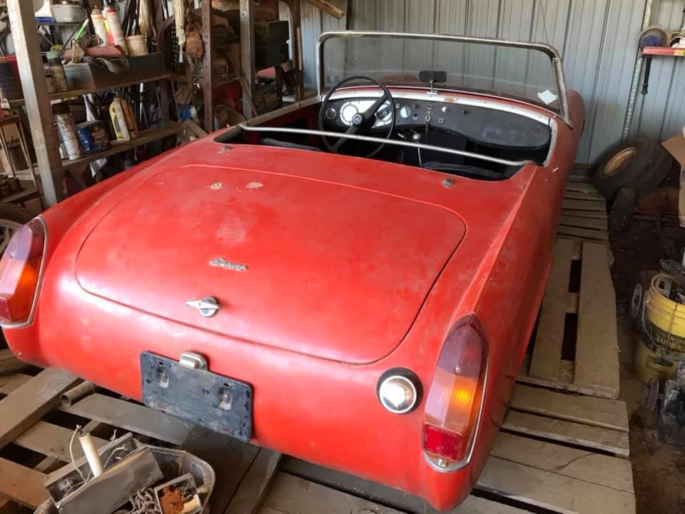 Bought a ’64 race car in ’10 to rebuild and go vintage racing with. It was turned into a race car early in life and had zero rust. Half way through the build we tripped over a rust free Bugeye rolling chassis and bought it. Wife wanted her car port spot back so it went to a racer friend. Just couldn’t get away from the Bugeyes! Did appreciate the trunk on the ’62 Midget we had. Love to see this one out of the shed but it looks pretty good on surface. Couldn’t get the Facebook site to come up so don’t have a clue what’s underneath. Be safe.