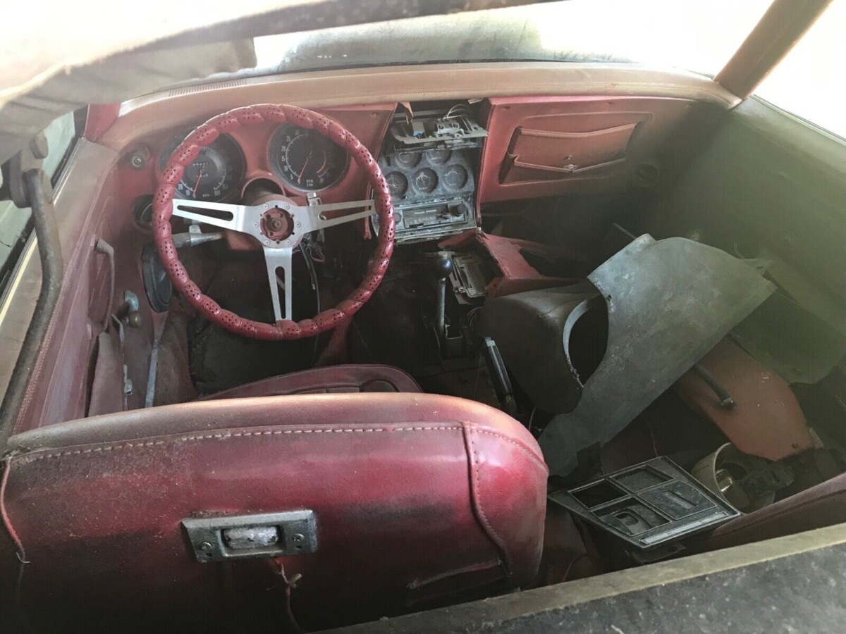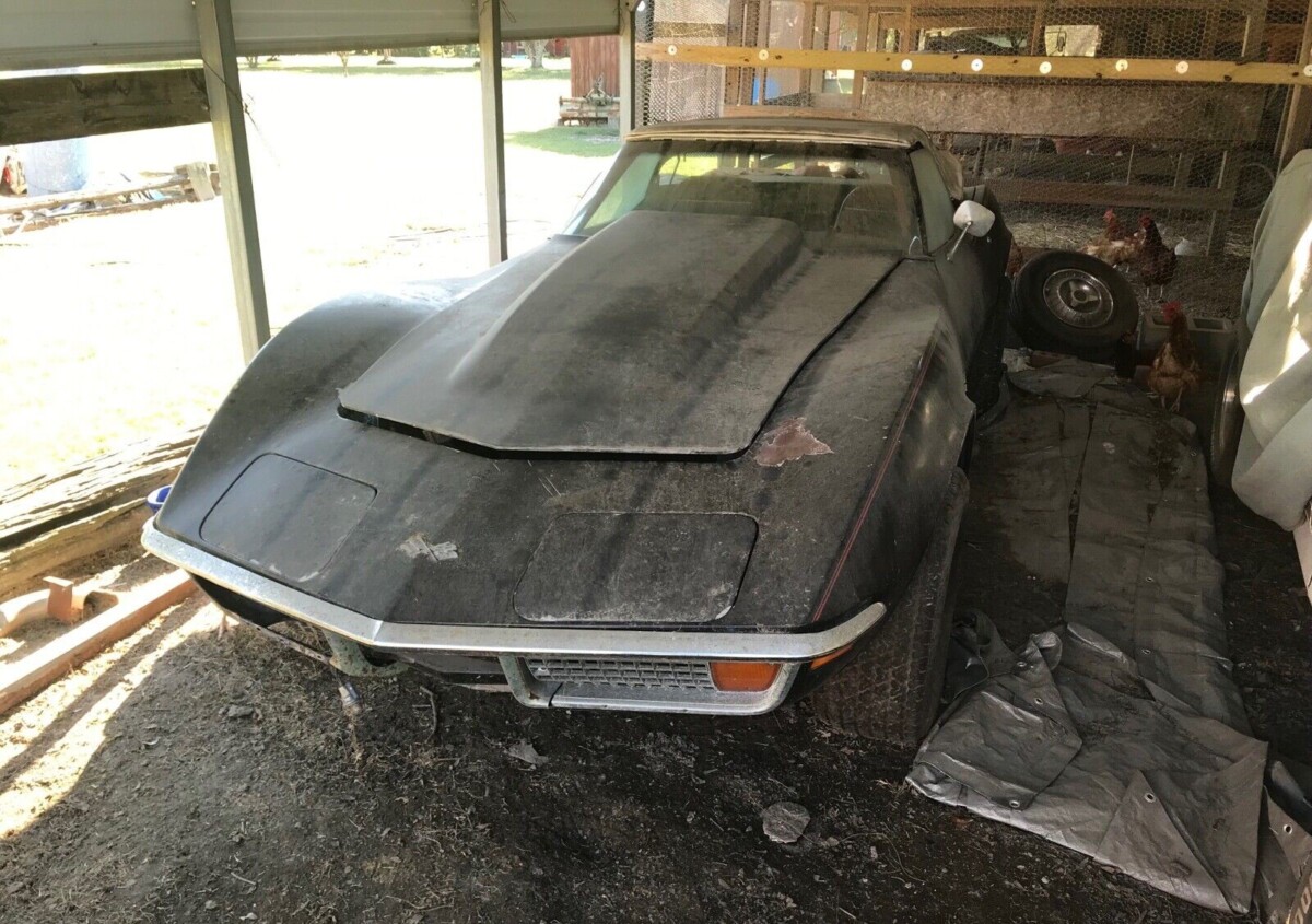 This makes me feel better about the orange 72 vette that was featured a week or more ago. It looks descent-but has not run in many years. Its a t-top car with a 4spd. and a rough non-running 350.It appears the frame and birdcage looked good with the extra pics the seller sent. It needs to be gone through-but only 82k. $7400 plus1,500 to ship it across the country. I have posted many comments-some a little goofy since my writings are a bit off at times and i miss spell, but i mean well and like to add my perspective. This one I want to share with barn finds readers so i will do my first post with the vette and also my 71 purple duster just got to figure out getting pics posted