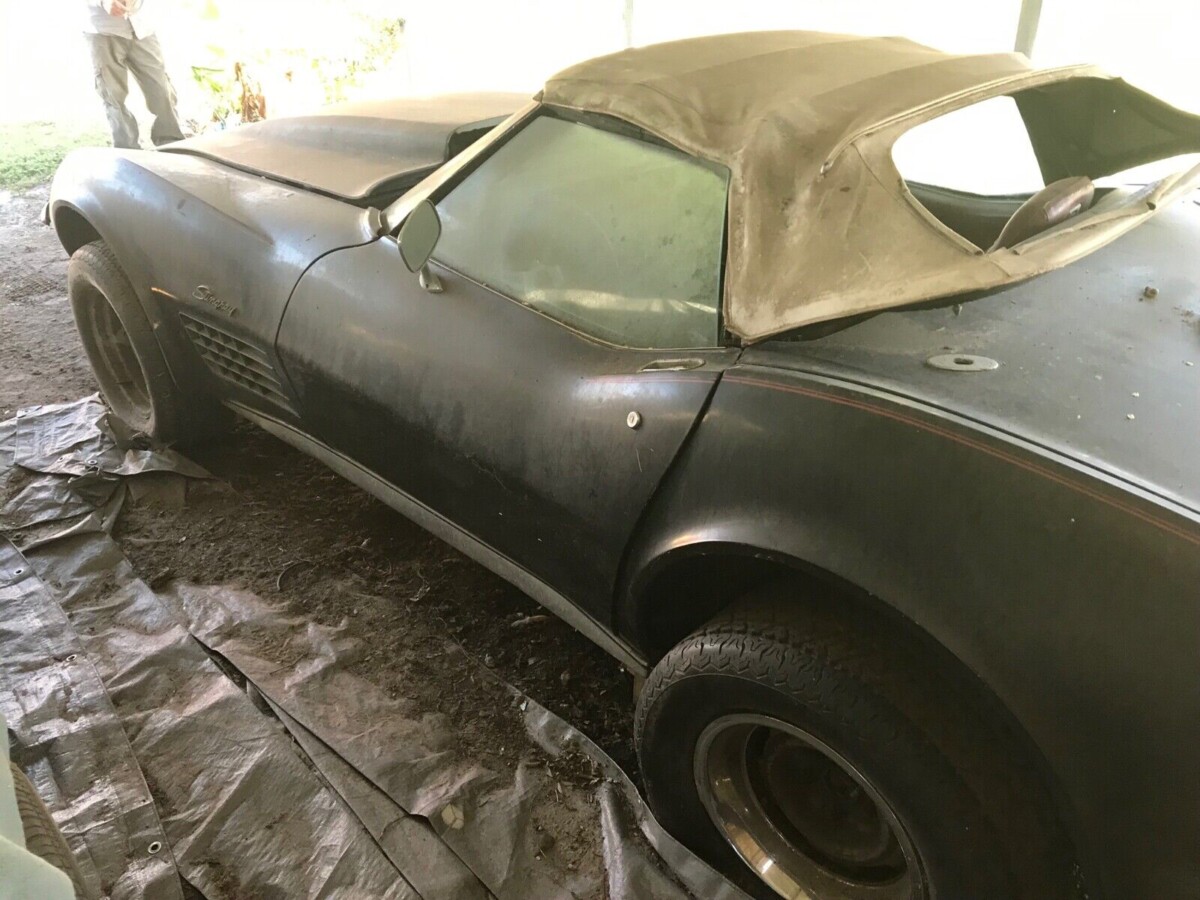 Demand for the Corvette convertible had been declining almost every year since the coupe was introduced in 1963. In 1972, only one in four Chevy sports cars produced were of the drop-top variety. So, given the likely survival rate of the ’72 ‘Vette convertible may mean than perhaps only 1,500 may be left. Does that rarity lend itself to restoring the car as it was built (though not numbers matching) or go for the restomod look which appears to already have been started?