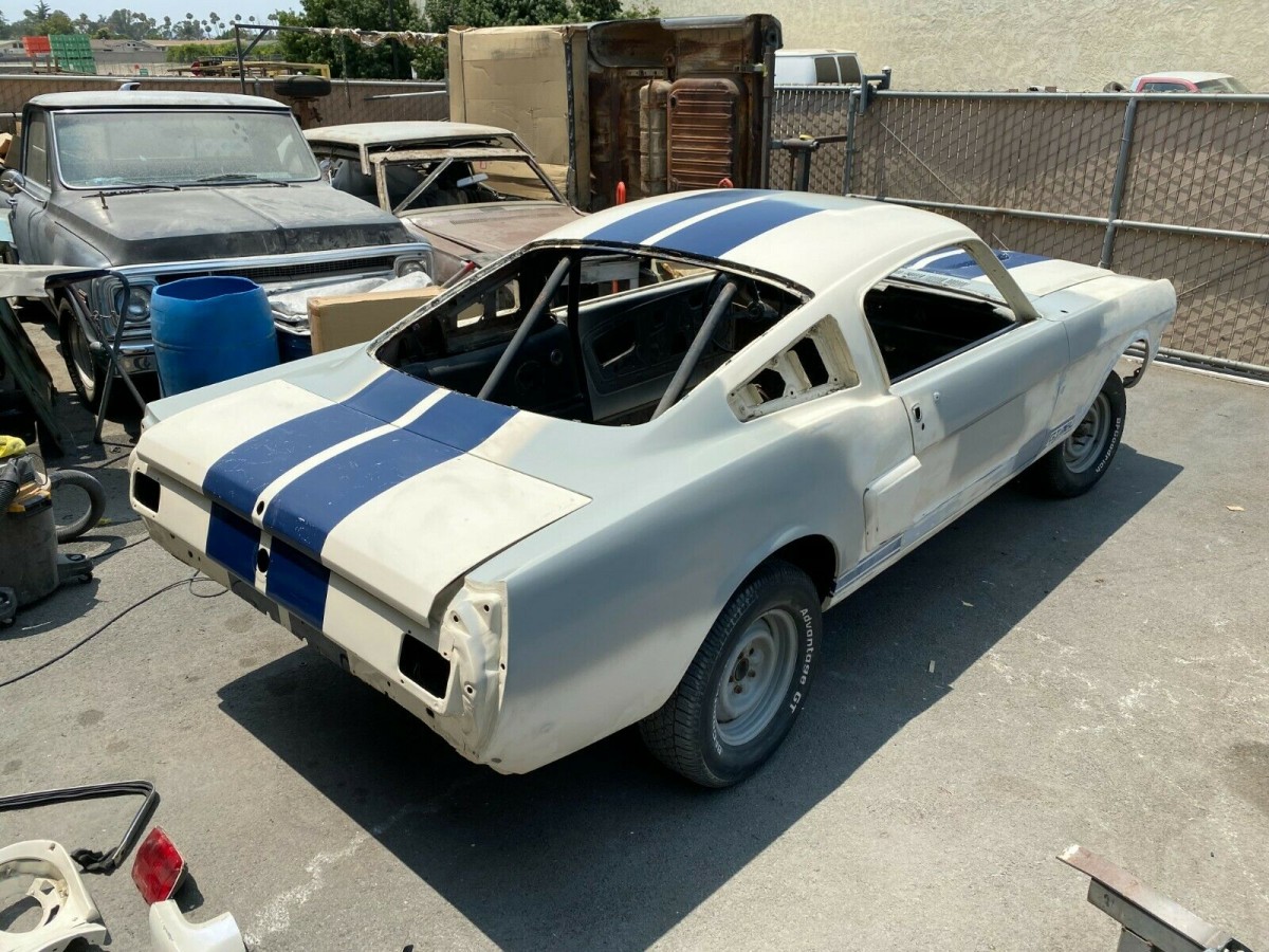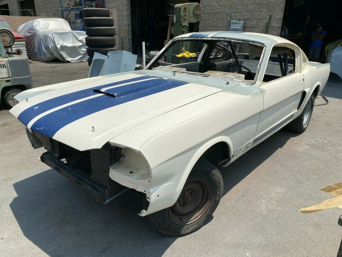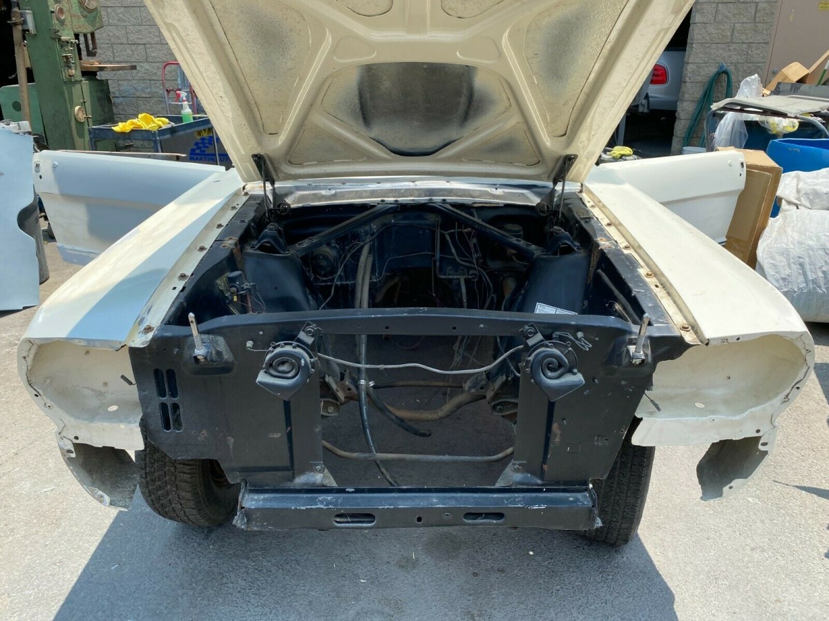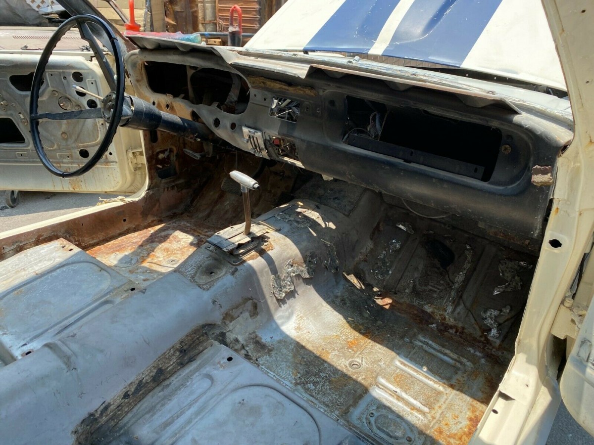 The seller’s Mustang was originally a C-code car meaning it had a 289 V8 with an automatic, but just a 2-barrel carburetor and an output rating of 200 hp. That engine and transmission are long gone, so the seller can build it his way, depending on how hard it is to locate the proper hardware. This is the second time this car was intended to be a GT-350 clone given the graphics still on the car, but we don’t know how far that owner got. It’s now a rolling chassis with a body and undercarriage that are virtually rust-free, according to the seller. We’re told all the bodywork has been done previously, but some minor rework here and there is going to be needed.