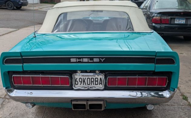 The Grabber Green exterior gives the car an unmistakable presence, complemented by its white soft top and interior, which keep the look clean and period-correct. The interior appears tidy and classic, sticking to the factory-inspired Shelby layout. It’s the kind of color combination that was made for summer cruises and car shows alike.