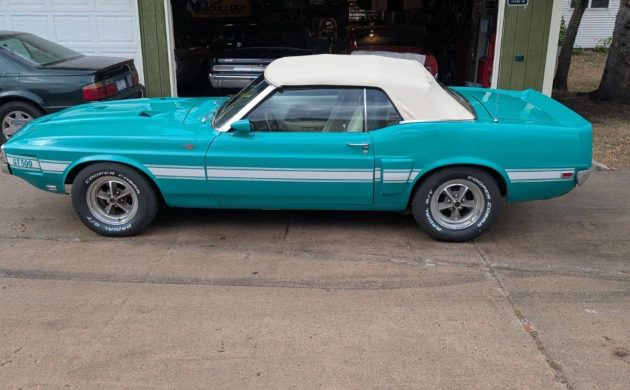 Listed for sale here on eBay, this 1969 Ford Mustang GT500 Convertible Tribute brings together the unmistakable look of a late-’60s Shelby with the drivability and appeal of a carefully crafted tribute build. Finished in Grabber Green with a white convertible top and interior, this car captures the essence of the era when Ford and Shelby collaborated to create some of the most iconic muscle cars ever built.