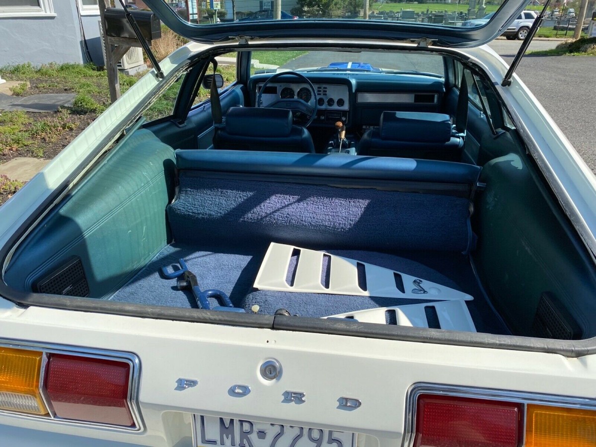 Had one just like it, other than mine was blue with white stripes. Worse car I ever owned. The 13″ wheels rode like crap. The engine was weak as it could be. It used oil. The only thing even close to a cobra was the decal on the side. Lucky for me somebody side swiped it and they couldn’t get the paint to match back in those days (blue metallic), so I traded it for a 77 Thunderbird. Much better car at the time with a 351w.
