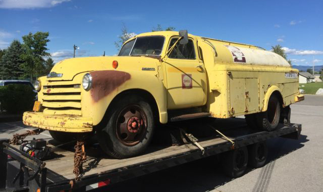 I’ve been known to collect (hoard?) things: matchbook covers, post cards, guitars, cars, and probably other things that I can’t think of now. If I were to ever start hoarding 1,100 gallons of gasoline at a time, this 1948 Chevrolet Loadmaster Tanker would do the trick perfectly. This super cool project is listed on more than one site, as is often the case these days. It’s on Craigslist in Sandpoint, Idaho with a $1,900 asking price and it’s also listed on ClassicCarsMarks.com with more photos. Let’s gas it up, chickie, and check out this cool fuel tanker.