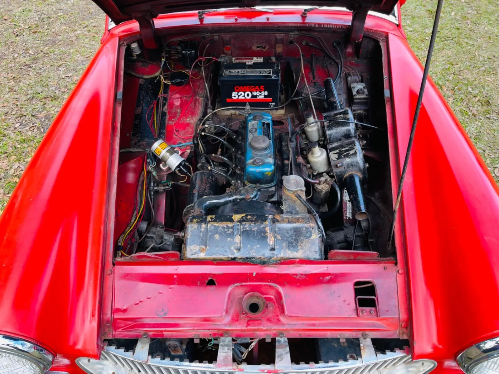 It looks like you could just jump in this brilliantly red 1962 MG Midget and drive off, but apparently, you can’t. The car here on eBay in Lutz, Florida with no reserve was “found sitting for a long time as part of a large collection of vintage cars.” Bidding is at only $510 but is sure to go at least a little higher.