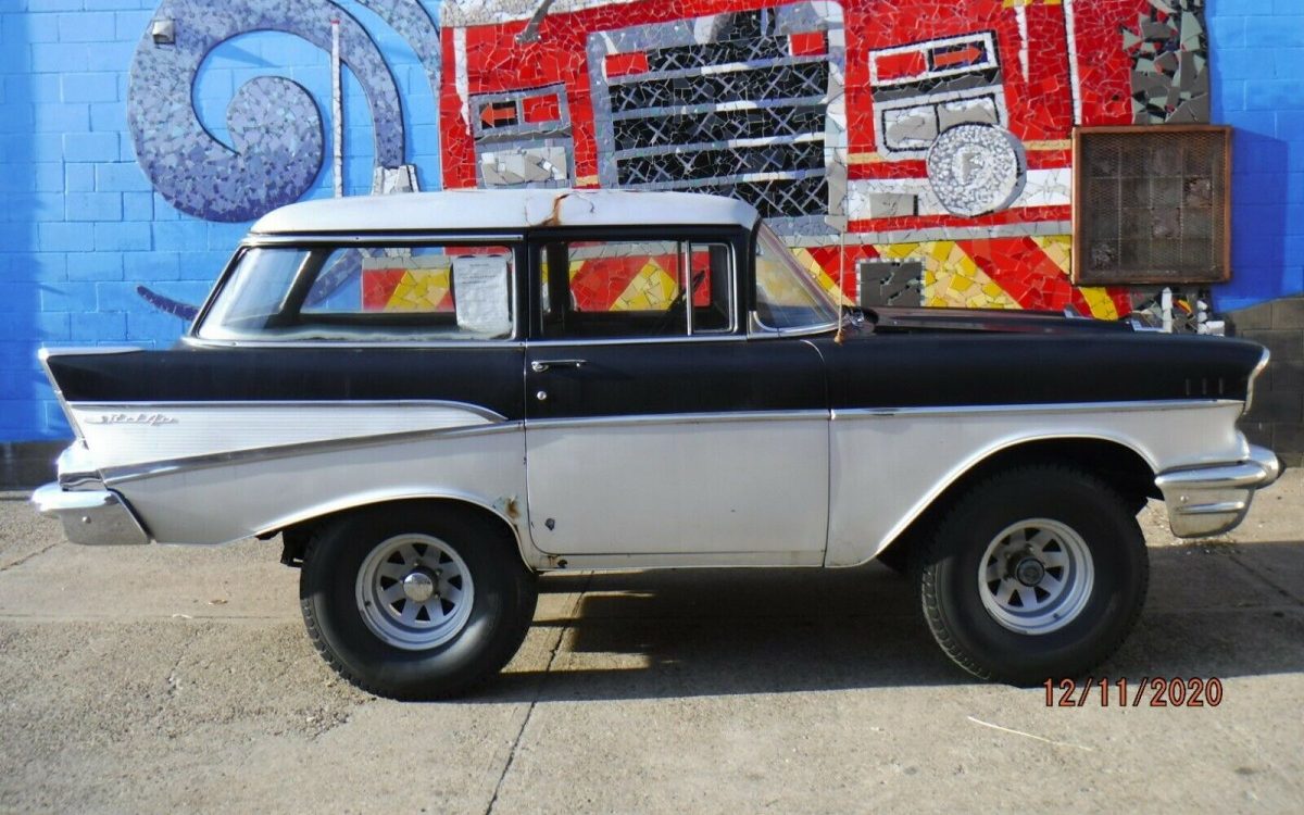 Given the doors, tailgate, and rear glass angle, I suspect this was converted from a normal ’57 wagon, and not a Nomad. I hope so, because that’s basically my dividing line from “unusual build” to “they destroyed a classic”.