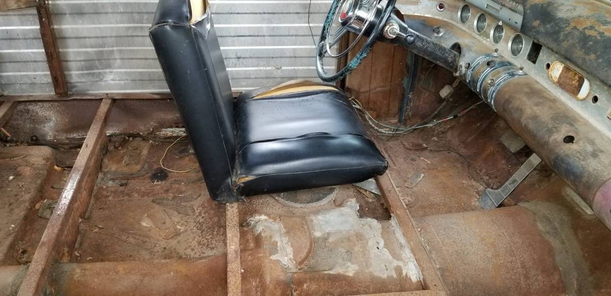 The original dash remains, but there is no real interior to speak of. This conversion took away the Buick doors, so there is only one way in and out of this machine. Rot can be found in the floors, as well as in the rocker areas.
