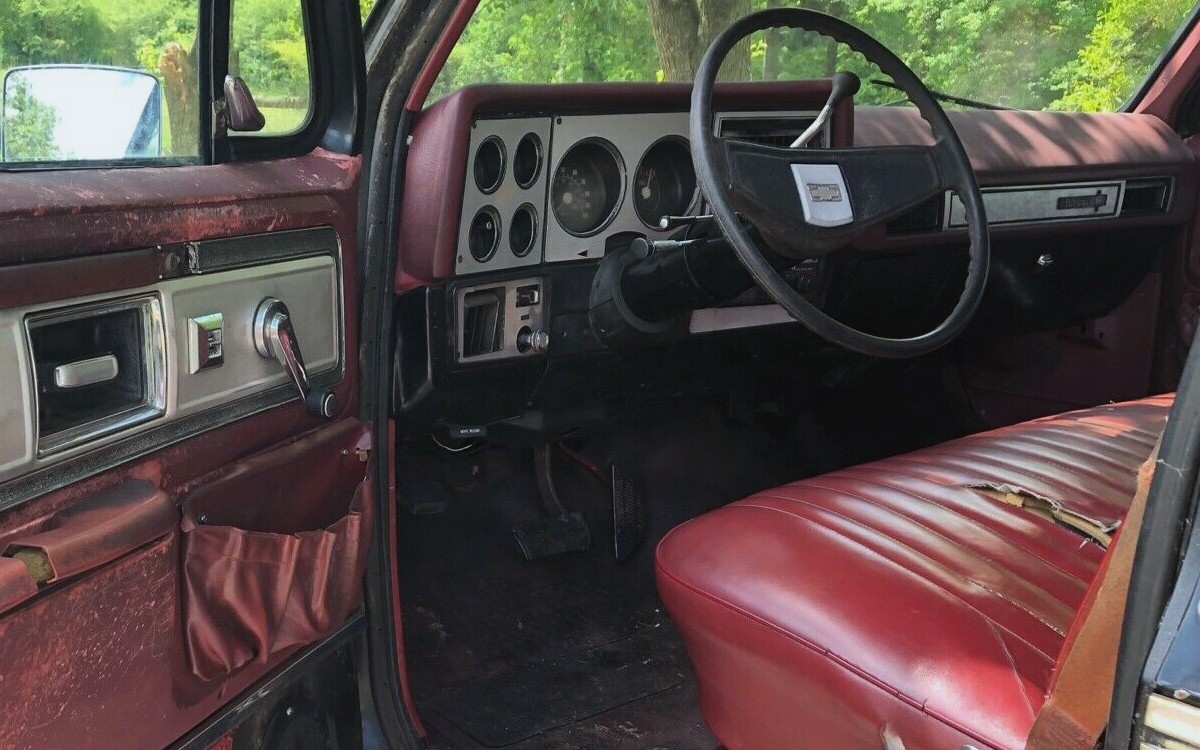 It’s hard to tell if there is any rust but after over four decades, presumably in Georgia, I would guess that there is at least surface rust underneath. Cap’n Obvious strikes again. The short bed looks solid and the interior needs a little help but almost every part and piece should be available from aftermarket suppliers to bring this Silverado back to its former glory.