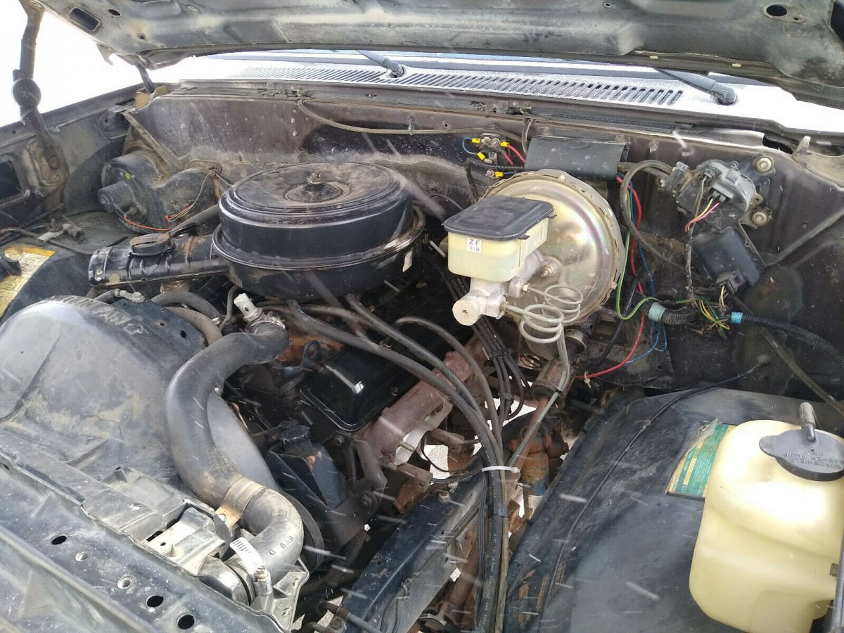 The motor appears to be the original 305 cubic inch V8 engine that is said to start up and run fine. There is a puff of smoke on start-up from leaky valve guides. The 4WD works freely and the truck is equipped with a 3.08 rear gear ratio. The seller states that everything works on the truck including the wipers, lights, heater, and gauges. I had a 1985 GMC truck similar to this with the 305 cubic inch motor and, while not powerful, it was reliable and fun to drive.