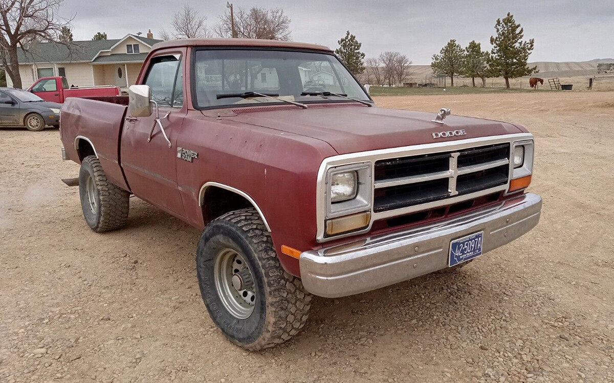 Having lived where there is snow on the ground for four or five months out of every year, and this year, record-breaking snowfall levels, it’s nice to have all four wheels providing power to the ground. This 1985 Dodge Ram W-150 4×4 certainly has that ability, and it’s listed here on eBay in Baker, Montana. The current bid price is $2,800 but the reserve isn’t met yet.