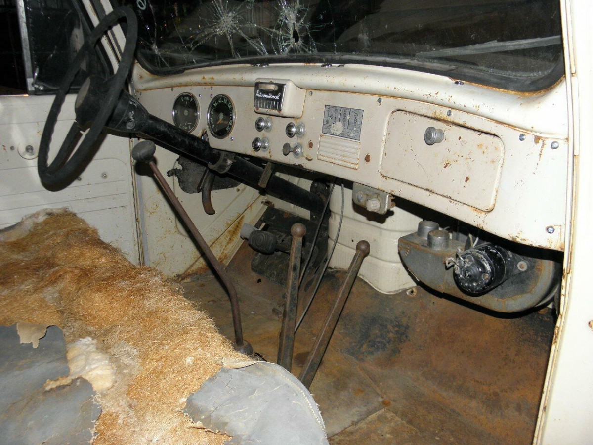 The interior is surprisingly complete, with an uncut dashboard and original controls all in place. The floors look impressively solid, and while the seat is torn up, I wouldn’t expect anything less in a rough rider like this. Although mostly complete, some bits are missing, including “…radiator & fan shroud, both inner front fenders, one hood side latch, the front bumper, both correct headlamp bezels, the rear window, both side windows, the left side mounted spare tire carrier, the spare wheel and tire assembly, the jack and tools.”