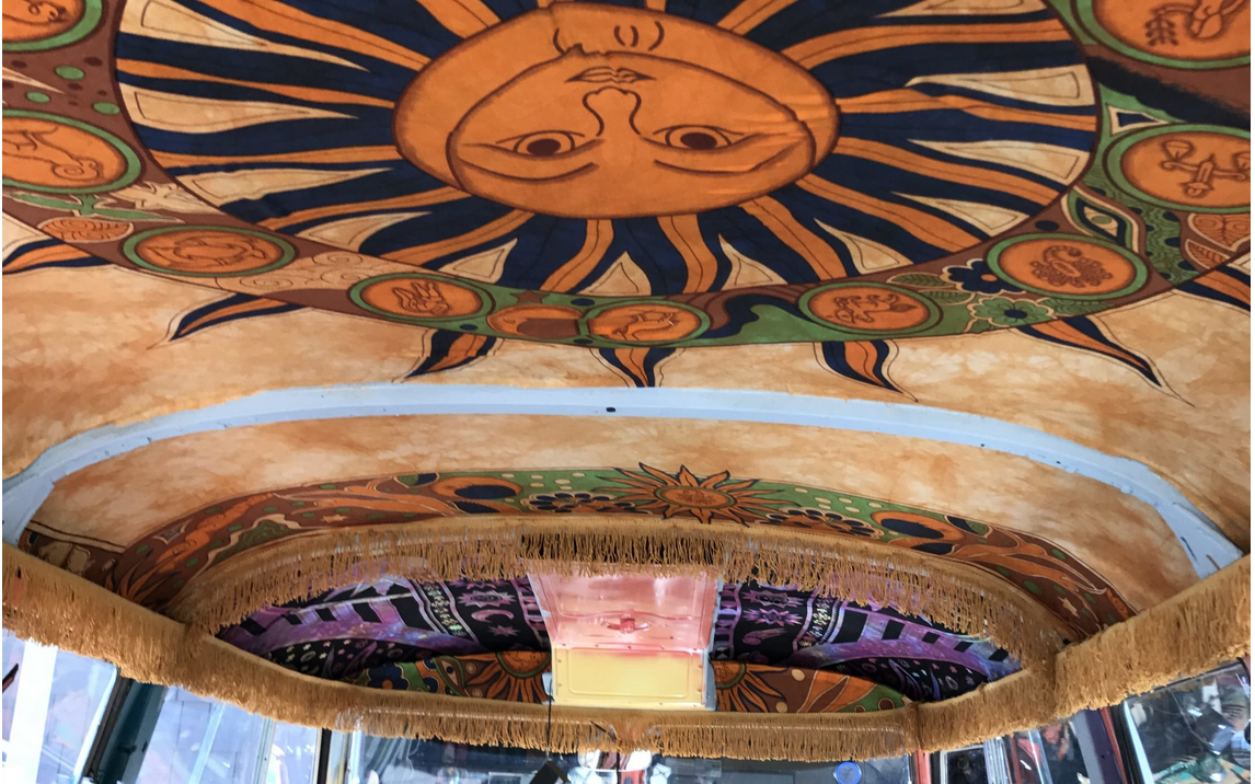 The interior could be even more wild than the hand-painted exterior. There’s lots of colors and custom touches. I’d be a little nervous of what I might find in there though…