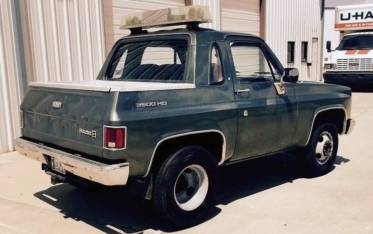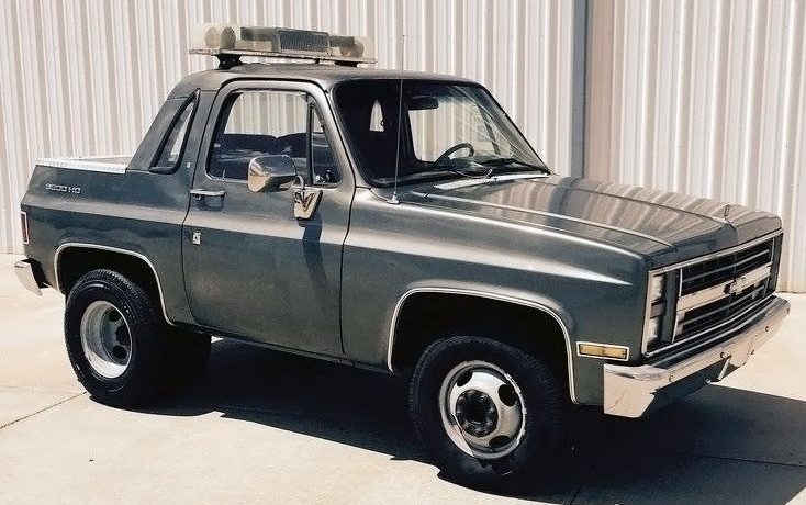 Ha! This thing rocks. The seller says that it started life as a full-sized 2-wheel-drive 3/4-ton Suburban, which for the record would have been over 18-feet long. It was sectioned twice, once to get rid of the rear doors and then once behind the rear wheels to create this 100% guaranteed crowd-gatherer. I always hear that everything is bigger in Texas, but maybe not everything is. Bonus: the siren and light bar is functional, according to the seller.