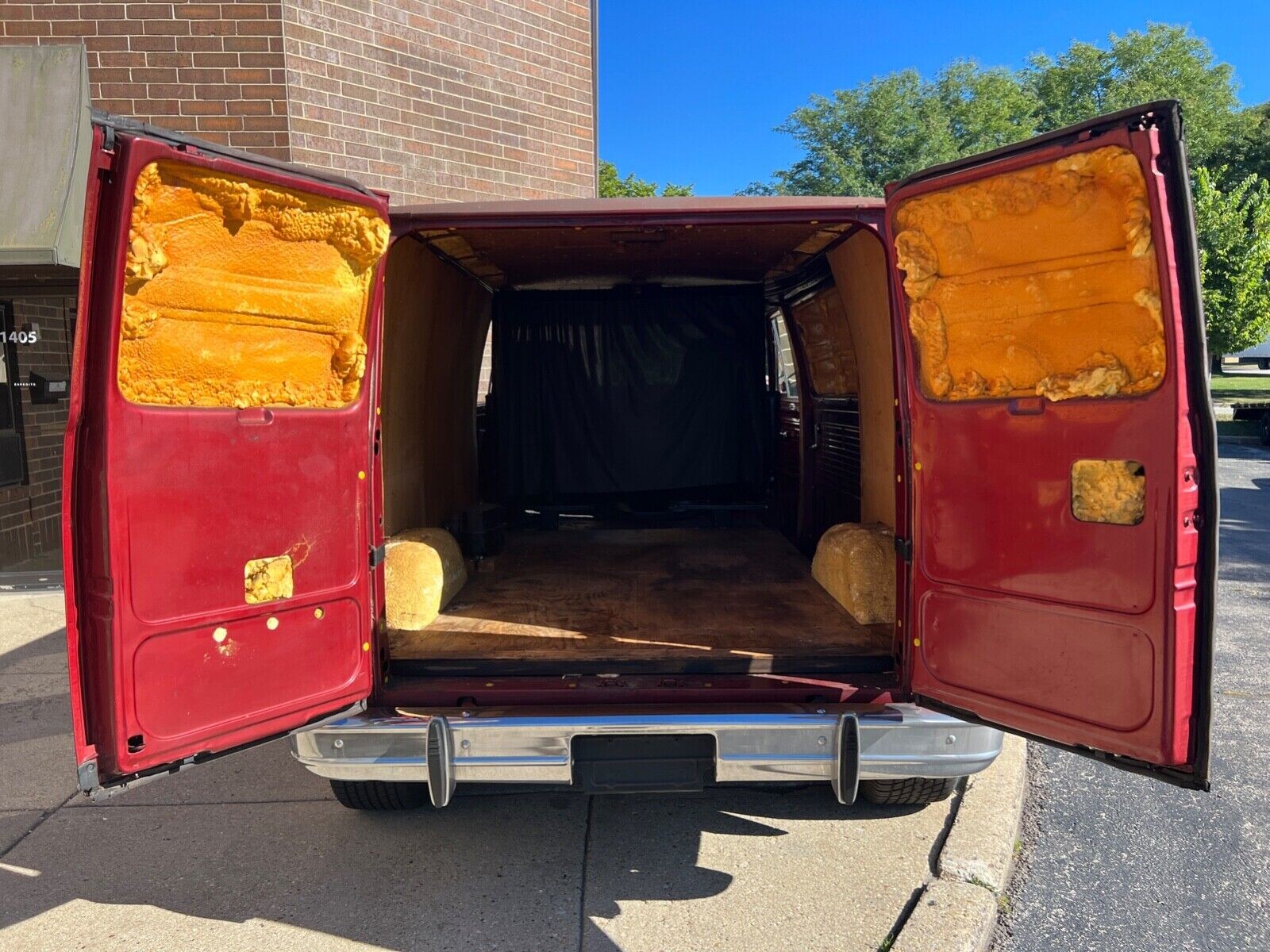 Now, right off the bat, this G20 is equipped with a body style that is just about perfect: one sliding door, rear barn doors, and no windows. Now, I personally like a porthole window if I can get one, but if you’re going to use this G20 to occasionally sleep in or otherwise live out of, not having windows in the side is a bonus. The seller claims it wears 95 percent original paint and has nearly no rust.