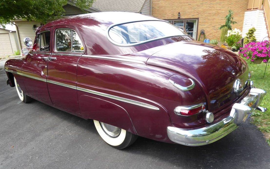 Over the years from 1961 to 2018 I owned several 49 -51 Mercuries, and a few were Monarchs — Canadian born. All were 4door and the suicide rear doors got more comments at car shows than any 2door car got comments on being a coupe. I restored a ’49 Monarch in the 80s and drove it until 2018. I converted it to 12 volt, O/D with a floor shift and duel exhaust . Everything else was stock. Additions were skirts, peep mirrors, WWW, cassette player for Beach Boy tapes and yellow driving lights. The ones on the car here look too big, mine were a little smaller and they bolted over small raised sections on the panel behind the front bumper. I had a visor and a spotlight but never put them on. too gaudy. Sure miss that sweetheart.