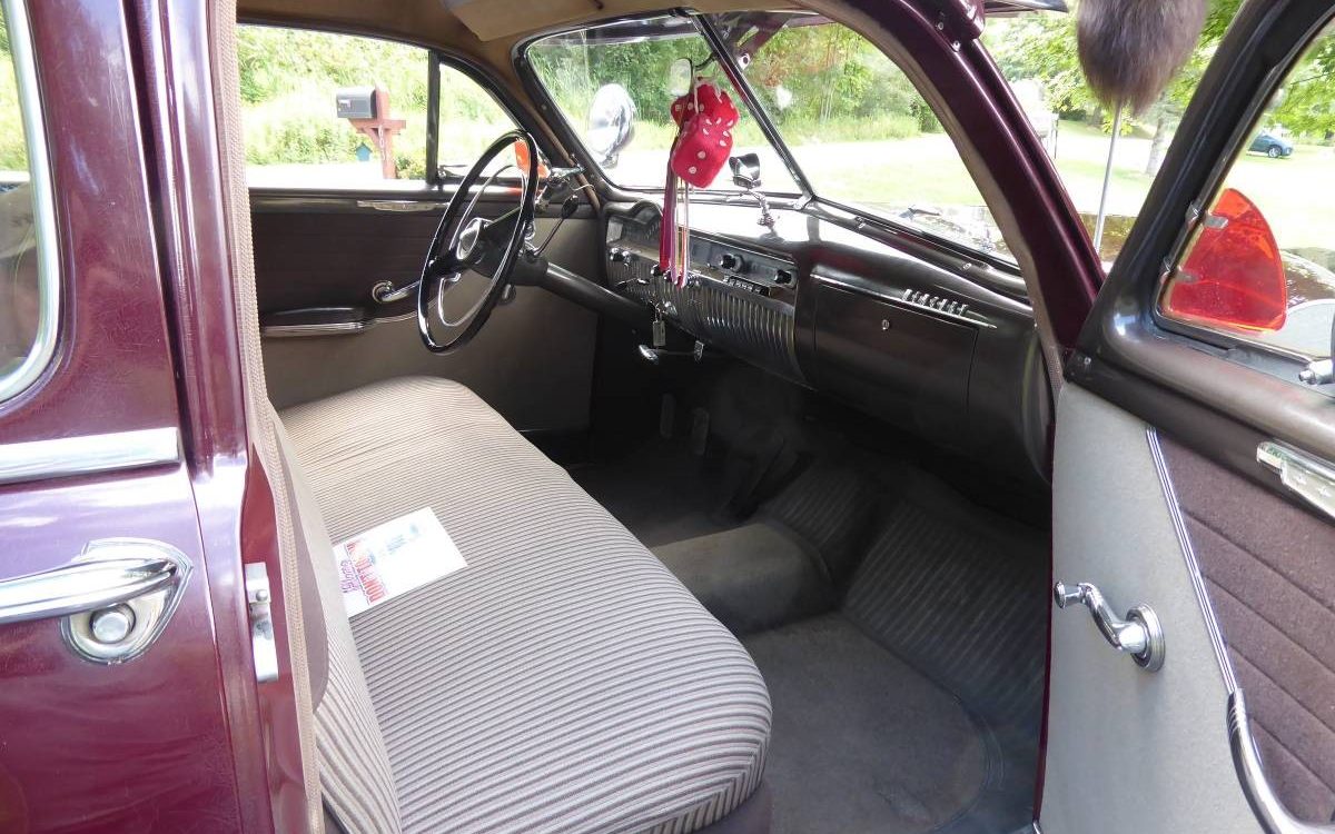 The interior is correct for a 50 Mercury. When I bought mine, it had seat covers front and back. I decided to take them off and discovered seat covers in the same condition as the Mercury above. My younger brother had a 50 Olds 88 2 Dr that also had seat covers. He decided to take those off to see if he could find the same thing as my Mercury. It was not to be, as he found out why his Olds had seat covers – not a pretty sight!