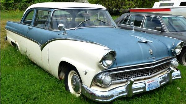 The interior on this 1955 Ford is beautiful but there’s bubbling as well as surface rust on the paint. It’s got a V8, but it also has an automatic transmission. And hey, it’s only got two doors! This old Ford might clean up and be a really nice driver.