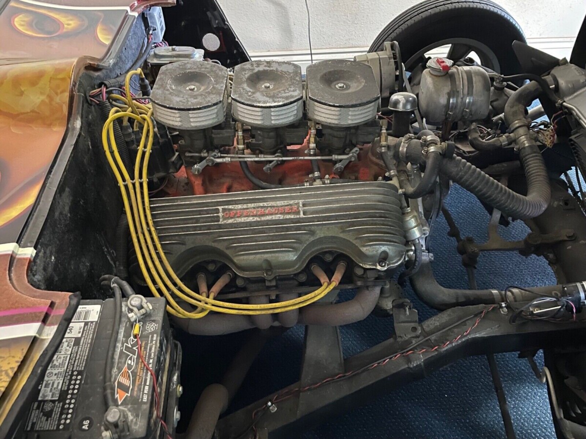 The paint job is the most eye-catching feature of this already in-your-face automobile. We are told it is the handiwork of a gentleman named Phil Leonard, of the Syrarum Color Studio. It is designed to emulate a 1970s street machine look. The seller tells us that purchasing this car is like having one’s very own Hot Wheels car in life-size, and that description is not far from the truth. The car is wildly unpractical and outlandish. It was as if a 12-year-old won a huge lottery prize and was suddenly unencumbered with such things as checking prices on their desires.