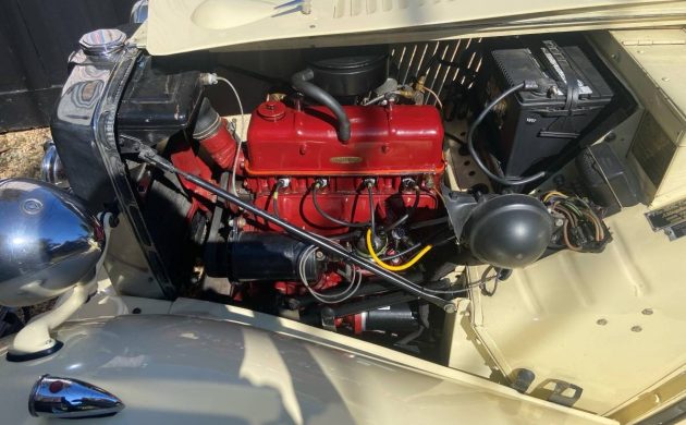 MG introduced the TD to its model range in early 1950 as a worthy successor to its previous TC. I use the term “worthy successor” because, while many traditional styling cues were carried over, suspension upgrades blessed the company’s latest offering with improvements in handling and ride comfort. This TD hails from the final year of production, leaving the Abingdon line in 1953. The listing confirms that it has undergone a fairly thorough restoration, and finding anything worthy of criticism is almost impossible. Several paint shades remained available throughout TD production, including the Ivory gracing this car’s exterior. It shines beautifully, with no visible flaws or defects. The panels are straight, and with a protective coating applied to the frame during the build, this classic is rust-free. The trim is in good order, as is the glass. The wheels are one minor deviation from factory specs, with the information that I have confirming that the 15″ steelies were never painted Red. Otherwise, the grille sports the correct slats to match the interior trim color.