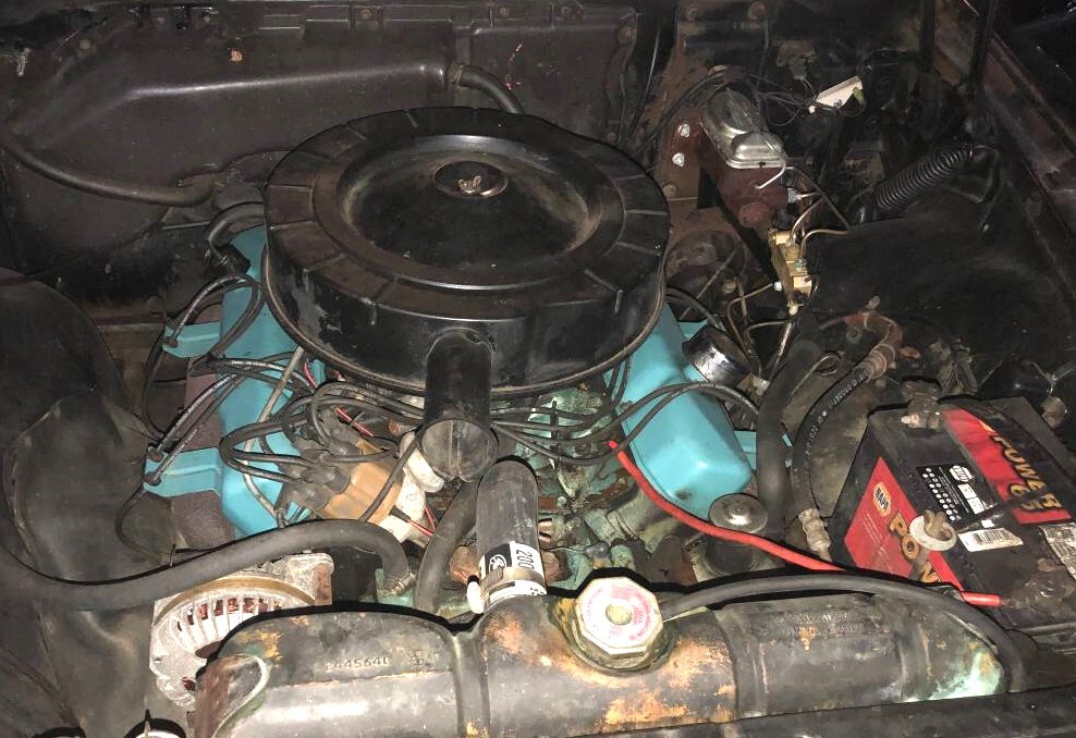 The base engine in the Newport was a 265 hp, 361 cubic inch V8 with a 2-barrel carburetor. That’s what we’re told occupies the seller’s Chrysler at 88,000 miles and we believe it runs fine. The seller has invested in some maintenance and/or upgrades which include front disc brakes, master cylinder, shock absorbers, and other front-end parts. It also has new tires and an automatic transmission, which I think was the last year for the push-button set-up in 1964.