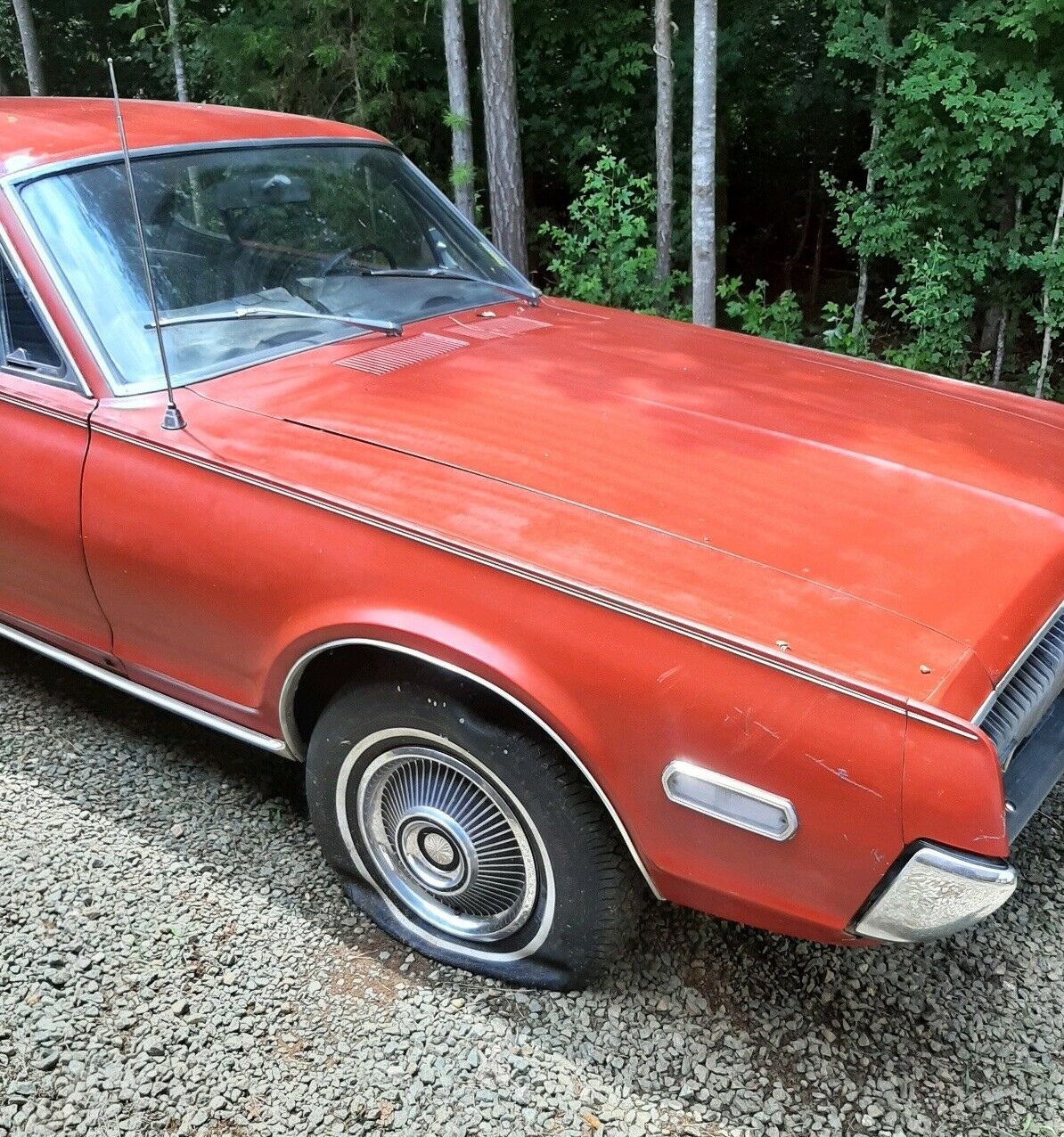 Good entry level car for someone wanting a Mustang cousin. 4 barrel J code 302 a plus. Drum brakes a minus. Looks like a 68 Mustang console in place of the 68 Cougar console with the clock where the slide up door would be. If this was a Mustang, would be much more activity on ebay.
