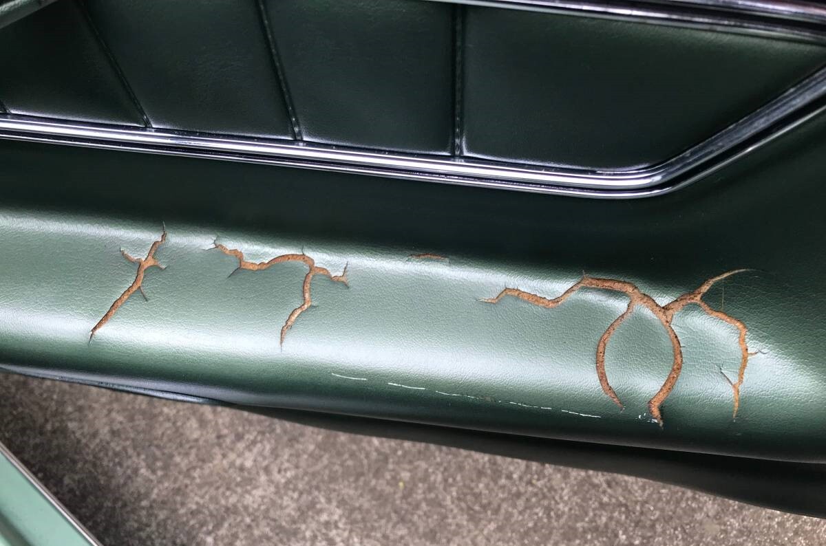 This car has the optional decore style interior. The armrests are not separate pieces, they are molded into the door panels. The only way to fix them is to replace the door panels, if you can find ones that are not already cracked like these are. They did offer reproductions although now with the supply chain problems I am not sure if anyone has any in stock.