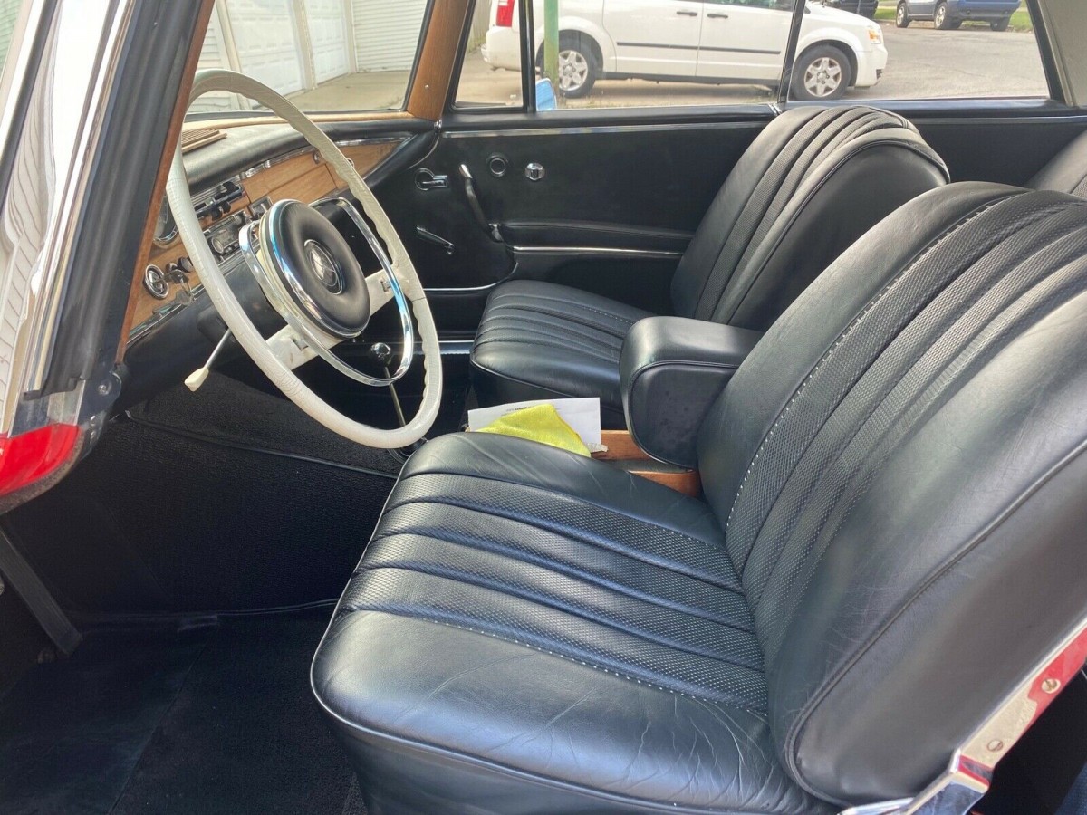 This series has one of the most beautiful interiors. Definitely rivals the interior quality of Rolls Royce and Bentley of the era. However the Mercedes is a much better engineered vehicle IMHO. Looking at the pictures the furniture could use a refresh bit it’s all there and restorable. Love the white steering wheel. So classy! I would own the car even with the over the top red since it’s the original color (I’m hoping) however I prefer a more subdued color like your medium to dark blues and greens. Maroon also works on this chassis.