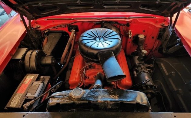 The seller supplies no images providing a broad interior overview, but piecing together those available in the listing appears to confirm that the Red and Silver upholstered surfaces are in good order. I can’t spot any rips, tears, wear, or other issues. The dash and paint are excellent, and the wheel exhibits only minor wear. They confirm that the fuel gauge stopped working recently, but that they haven’t had a chance to investigate the cause. The same is true of the radio, but the remaining features and lights function as they should.