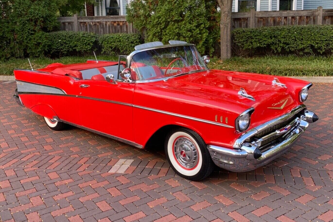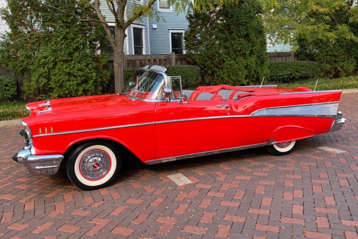 A fine looking automobile this is. In great splendor it captures the eye of those who see it. I’ve owned a 57 Bel Aire 2 door hardtop, but not a convertible. This car is the epitome of beauty in American iron. How the prices have soared since my youth making these beauties unobtainable for the likes of me. Yet I look on with great admiration at all the beautiful lines sculpted to perfection and glistening in the beautiful red paint and perfect chrome lined curves that sets these cars apart from all other entries. She deserves the best of care in her old age, like a towering castle overlooking the treacherous sea. Let her live on in great pride and let all others be jealous of her high standing in automotive glory.