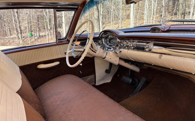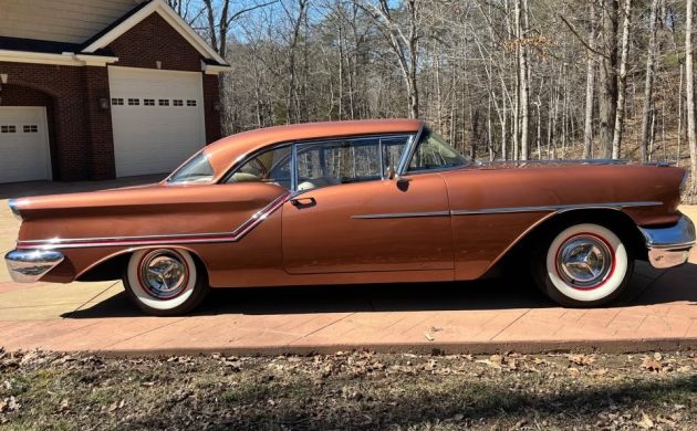 Oldsmobile released its Third Generation 88 range for the 1957 model year. It assigned the “Golden Rocket” designation to entry-level offerings such as this stunning first-year Holiday Coupe. The seller confirms that this beauty received a repaint in its original Cutlass Bronze Metallic with subtle Festival Red inlays, but not when this occurred. The presentation of this Olds is nothing short of superb. You could almost walk into the paint that seems to sport no discernable flaws or defects. The laser-straight panels feature tight and consistent gaps, while the underside shots confirm that this Coupe is rust-free. The glass is crystal clear, the bright trim is in as-new condition, and the exterior is perfectly finished with steel wheels that are painted to match the inlays, spinner hubcaps, and Coker wide whitewalls.