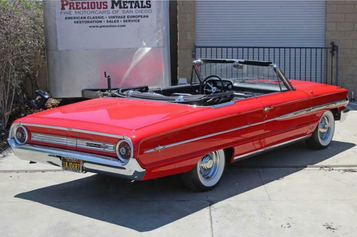 When it came to the question of presence, Ford seemed to get it right with the ’64 Galaxie. It’s worth noting that the company was riding the crest of a wave, with the newly-launched Mustang redefining what it meant to be a sales success. The Galaxie is long, low and features smooth and flowing lines that look unquestionably stylish. This impression is further accentuated in the Convertible version because the beltline and rear deck alignment made it the ideal candidate as a drop-top. This Galaxie is finished in sparkling Rangoon Red, and the paint looks stunning. It holds a beautiful shine, and imperfections are virtually impossible to spot. The panels are remarkably straight, and the alignments and gaps are about as good as you are likely to find on any Ford from this era. The Black power top is as impressive as the rest of the exterior, while there is no evidence of any rust issues. The glass appears to be flawless, as is the chrome and trim. The wide chrome steel wheels add to this car’s positive impressions, and the whitewall tires are the perfect finishing touch to the exterior.