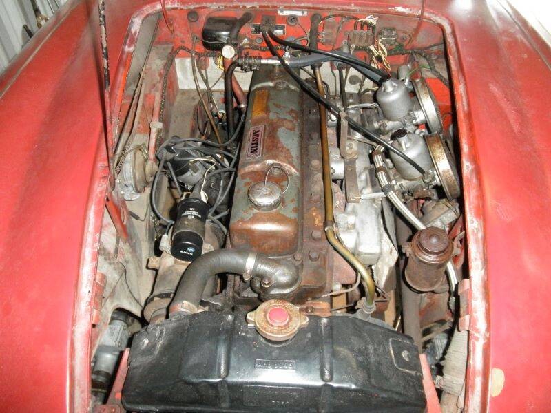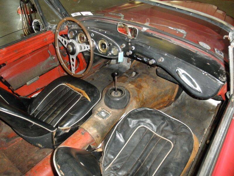 The seller’s car wears Colorado Red paint with a black interior. The canvas for the convertible top is no longer there, although the tonneau cover is new. The engine and 4-speed manual transmission are said to be original to the Healey. And lots of other things are said to date back to 1964, as well, such as the wire wheels and knockoffs. The list is rather lengthy and detailed, so there’s no need to repeat it here. The car has managed to collect 86,000 miles over the years.