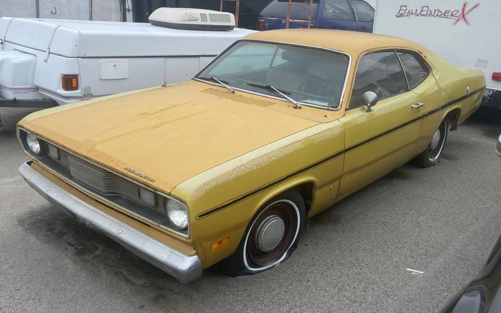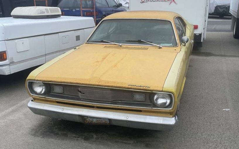 Whenever I confront a car, I wonder – why was this car made this way? Was it a sibling of some other car – or not? Was there something else going on – regulations, wars, Mad Men in control of marketing, financial distress, fads – that made this car this way? Was the designer crazy? Was the manufacturer an egotist? The Duster is fertile ground for these questions. In 1969, Plymouth received $15 million from Chrysler to facelift the Valiant. But it didn’t spend a dime on the existing car. Instead, stylists carried over the platform, sections of its sheet metal, and the bumpers, and went to work with a sketchpad. To fit within the slender budget, even the sheet metal crease lines had to match the Valiant’s stamping equipment. The whole exercise was clandestine, and contrarian. The corporate plan was to incrementalize cars, not recast them entirely. But the Barracuda was instrumental in the birth of the Duster. The Barracuda was newly situated on a larger platform. It was so heavy that it barely beat a Chevy Nova to the quarter mile. That spry Nova was the Duster’s target. And the Duster made a nice cradle for Chrysler’s 340 cu. in. V8 in addition to a selection of other engines. So the work proceeded, and that’s how the Duster hit the pavement starting in 1970. Here on craigslist is a downmarket 1971 Duster, with the revered slant-six and an asking price of $3000. The car has been owned by a single family since new, and it’s located in Oceanside, California. Tony Primo submitted this most excellent tip – thanks, Tony!