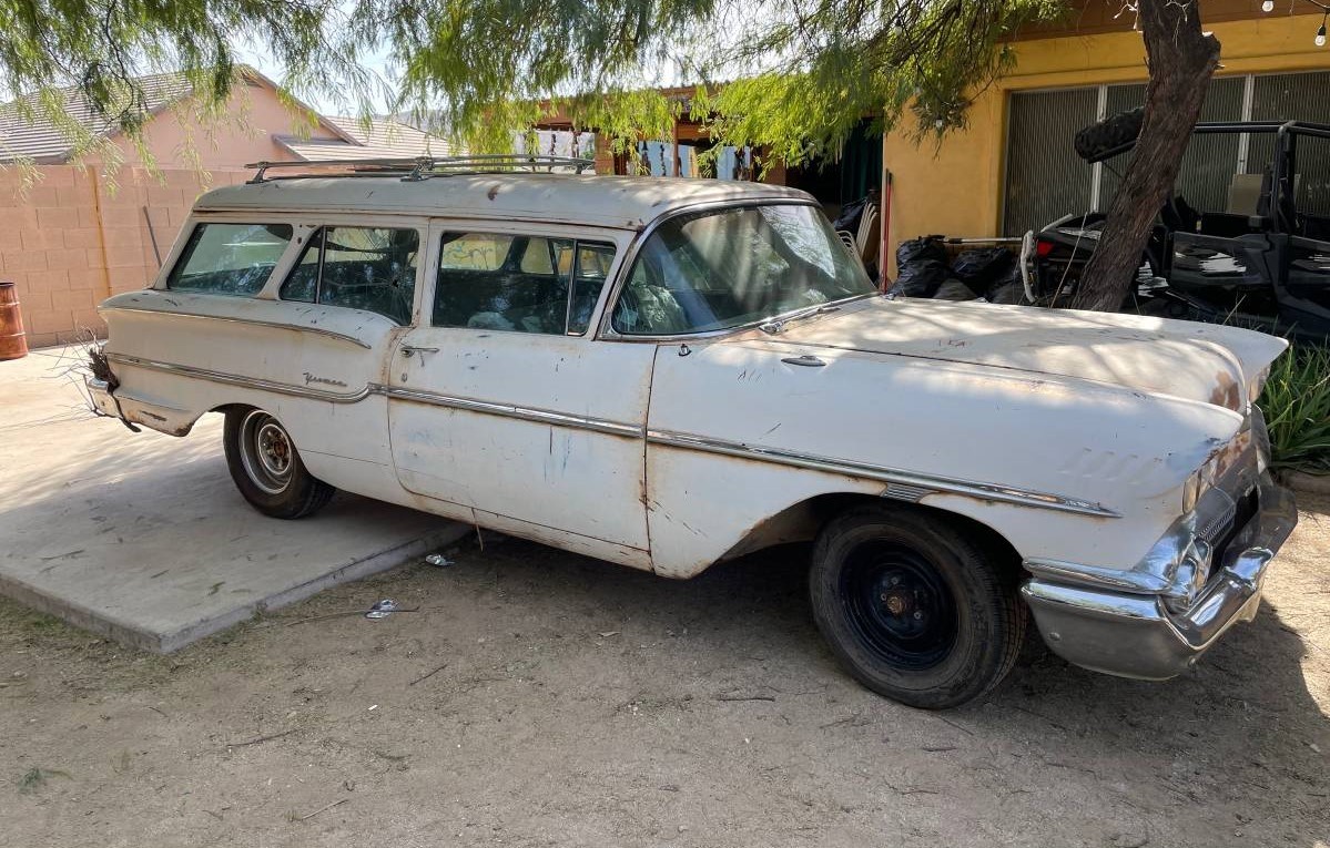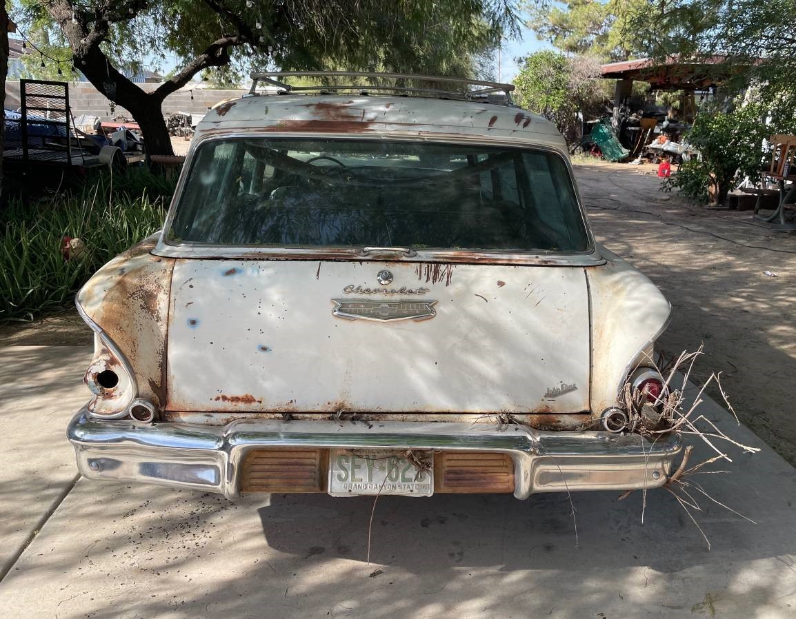 If I couldn’t afford a 58 convert. Or 2 dr htp Impala then this would be my next choice. I really like the 58 Yoeman 2 dr wagon. Need more pictures to make a purchase. My riding lawn mower I sold this year had 18 pictures, this car has only 3. If all the interior pieces are there it might be a fair price. No one noticed the one piece bumpers. I like it.