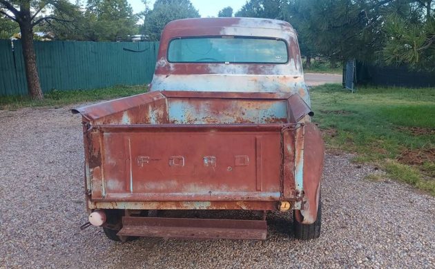 The crosspipe is missing, but there’s a new radiator hose, weird. This is, I believe, Ford’s 239-cu.in. OHV V8, the only V8 available this year, and it would have had 132 horsepower and 215 lb-ft of torque when new, according to this brochure. It sends power through a floor-shifted manual transmission to the rear wheels, and since it hasn’t run in 30+ years, well, it doesn’t run. The asking price seems reasonable given how desirable and valuable this truck is for restomodders, but I’d want to either get it working and drive it as is, or restore it back to original spec. How about you?