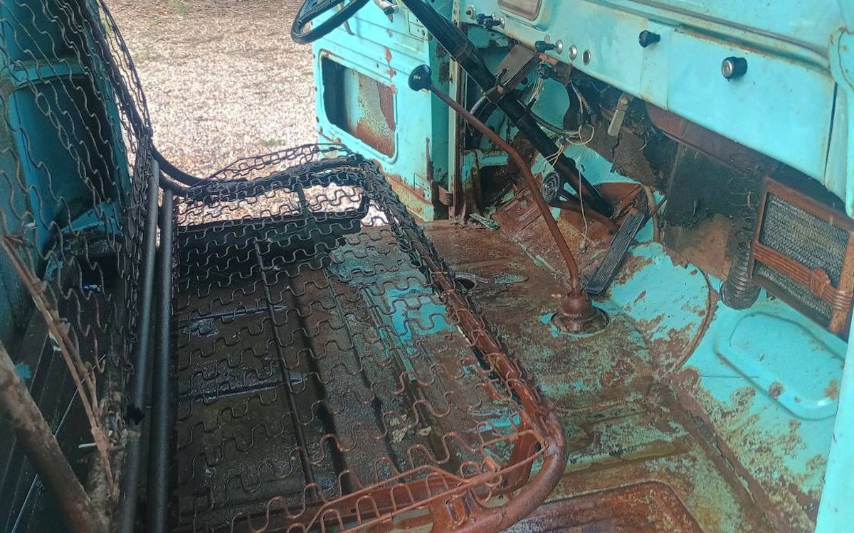This truck is said to be 99% rust-free, but it needs help on the cab corners at least, and there’s heavy surface rust in a lot of other areas that should be at least treated ASAP so they don’t create a bigger issue. The floors have a lot of surface rust, and the seat, well, you can see for yourself.