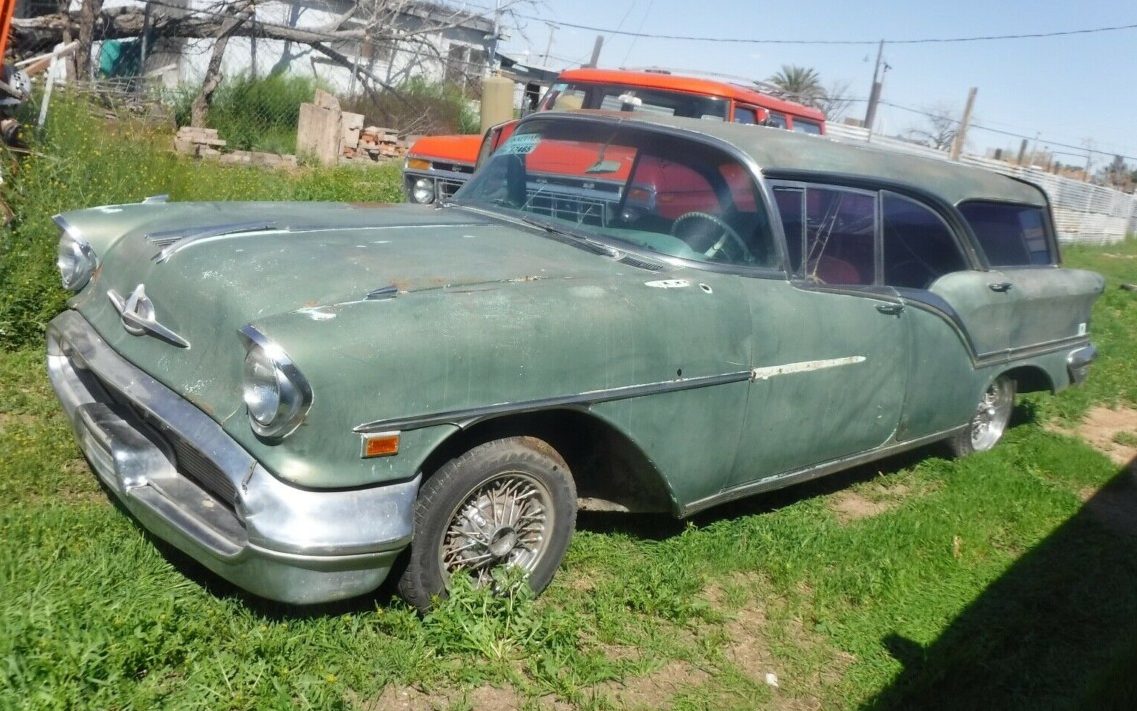 I’m a sucker for vintage wagons. The awesome styling combined with the nostalgia of cross-country road trips and the endless custom possibilities really gets my imagination going. This 1957 Oldsmobile Eighty-Eight is no exception. It can be found here on eBay with an asking price of $14,250, but the seller is accepting offers. Currently located in Santa Teresa, New Mexico, the ad says the car has been sitting for over 40 years! While it looks like there are some pieces missing, a lot of them appear to be safely stored in the inside. Let’s take a look!