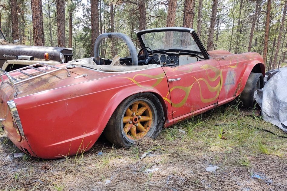 Wow, this brings back a lot of great memories. The original owner of this car was a close friend of my dad. Glen Holloway was his name and he drove and raced this car in many events with the Pikes Peak Sports Car Club. He was quite a character and a good man. At one point, this car was completely painted in flocked paint so it was completely fuzzy… with matching helmet! The car also sported a V8 at one point, and that’s when the flames were painted on. I watched this car run many Sundays at autocross and other events all over Colorado as a kid. So sad to see it languishing… hope someone can save it.