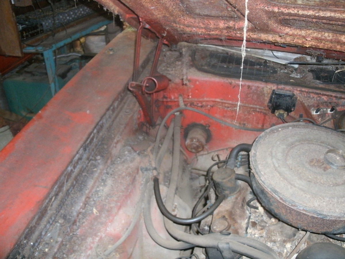 This is as close as we get to an engine shot, and there’s not a lot to tell about the state of the engine from this. The seller states that the car is fitted with a 318ci V8, and I suspect that this is backed by an automatic transmission. As stated earlier, the car was driven into its current resting place 30 years ago. Since then it has been cannibalized for its radiator, but there is no mention of any other parts being removed. The brakes are currently locked, but the seller is working on freeing these so that the car will at least roll.
