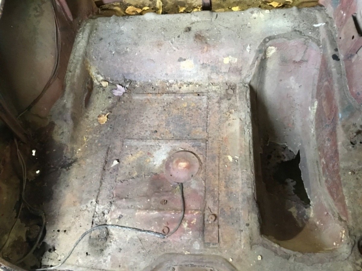 The seller states that the frame of the Wayfarer is solid, and rust in the floors appears to be quite limited. The rust that you see here in the trunk and spare wheel well appears to be the worst of it. There is some in the floors as well, but this looks like it may be able to be repaired without having to replace the floors completely. While it also appears that some of the exterior trim is missing, there is a photo in the ad which shows a lot of these pieces will come in boxes with the car.