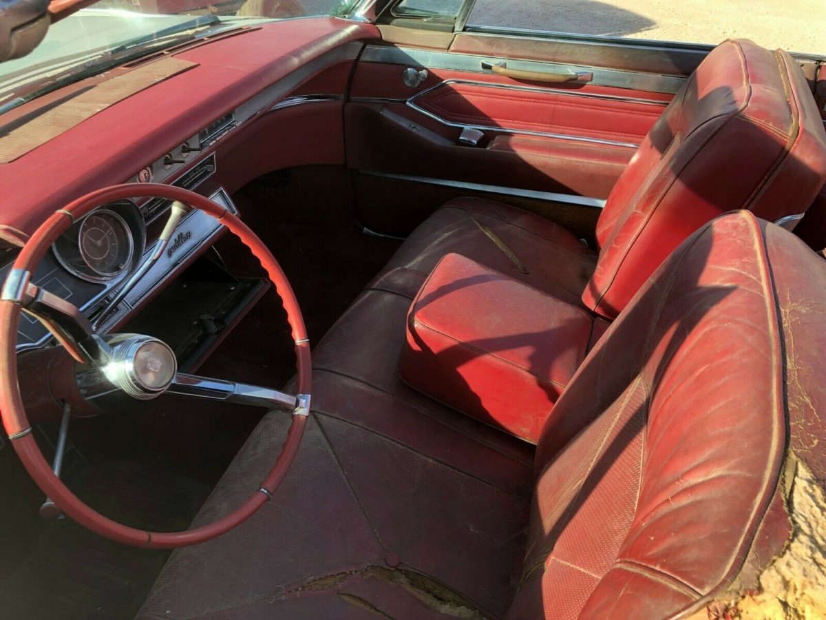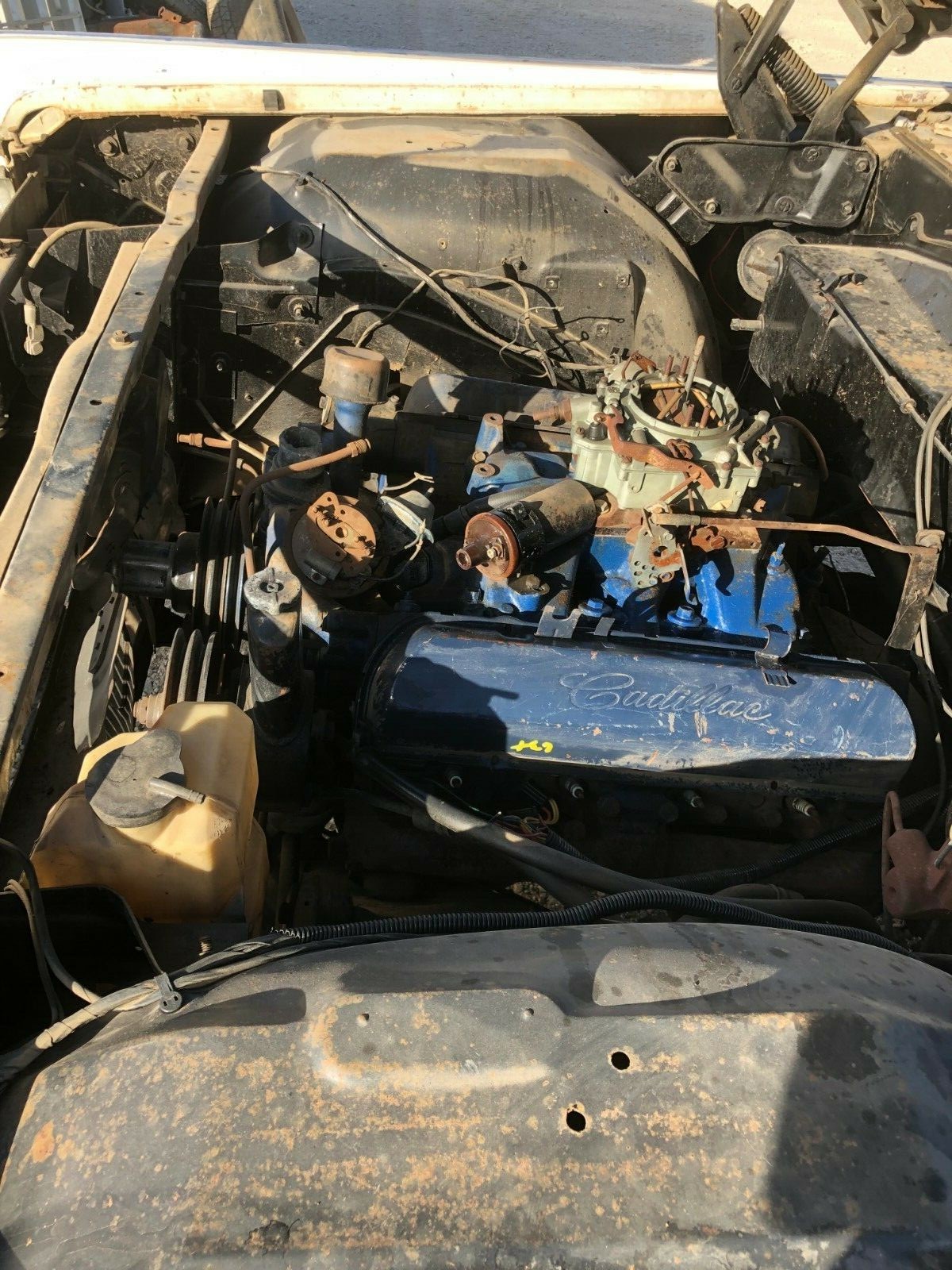 While it turns freely, the mighty 429ci V8 engine in the Cadillac doesn’t run. The owner says that he has made no attempt to start the car, and this is because it has been sitting for decades. It appears that he is leaving this action to the discretion of the new owner, but does suggest that the engine may need to be torn down and checked before it runs again. That engine sends its 340hp through to the rear wheels via a 3-speed automatic transmission, while power steering and power brakes are also included.