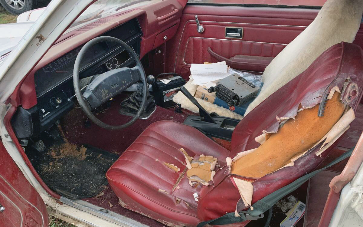 The seller says that this Vega has been sitting for several years, and you can see what often happens with vehicles that sit for a while, they sometimes become places to store things. All of the stuff in this car may be actually from this car, such as the stereo sitting on the passenger seat, but I even store things in my stored vehicles, so I know the temptation. While a Borg-Warner five-speed manual was new in 1976, this car has a four-speed manual, which was a hair faster to 60 mph than the five-speed was, but the three-speed automatic was two seconds slower. Not that many people are worried about 0-60 times in a Vega. The driver’s seat will need some help, which shouldn’t be a big issue for any decent upholstery shop, and the back seat should be able to be cleaned up. I’d take the seats out and put in new carpet, but that’s just me.