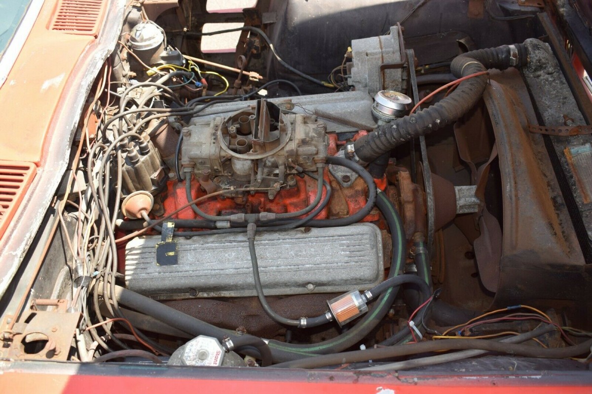 The interior certainly isn’t so bad you can’t live with it as-is, and the door jambs appear to reveal left-over original paint. The seller notes the Corvette has been sitting since 1983 but he did get it to run and build oil pressure. The previous owner threw some maintenance parts at it, including a new master cylinder and wheel cylinders, but abandoned the project after acquiring a new gas tank.