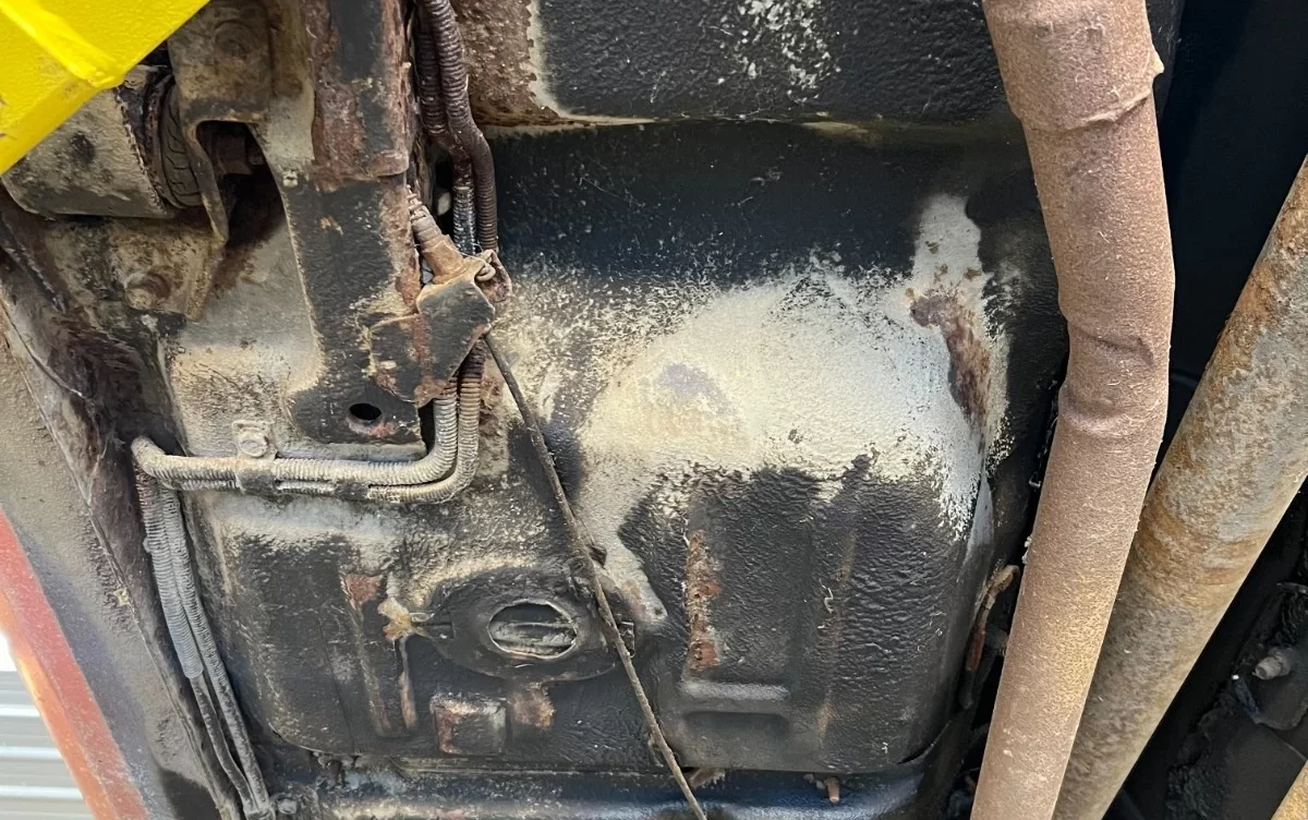 The interior appears to be complete, although it will need a good cleaning, and given the propensity of our mouse population to find nooks and crannies in long-sitting cars, it may need more than that. Fortunately, this Trans Am has a black interior, unlike my Esprit’s, which has faded to about six shades of red. The Trans Am interior had to be one of the best of the ’70s, with a purposeful engine-turned instrument cluster, Formula steering wheel, and console to remind the owner that they were driving one of the best performing cars in America.
