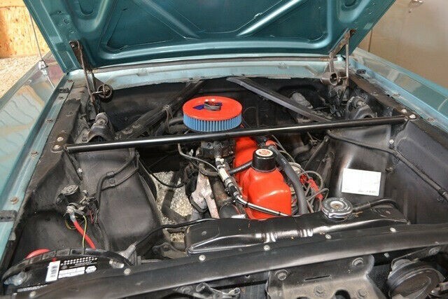 I owned a ’66 Mustang and the interior of this one is almost identical. The upholstery looks original as does the carpeting with no apparent issues to worry about. It even has Mustang floor mats in the front! There is no reference to how many miles are on the car, but we can see 4779.2 on the odometer. We can’t make out the number before it on the left, which could be anywhere between 0 and 9. This Mustang does not have a console, so the shifter comes right out of the hump. The shifter always rattled in the console of my ‘66, so this is probably no real loss. An aftermarket armrest has been added between the buckets with cup holders.