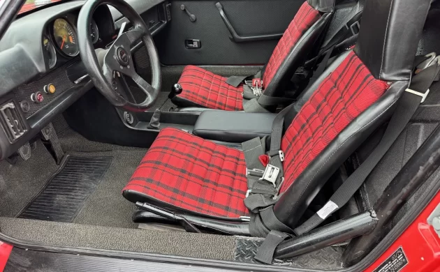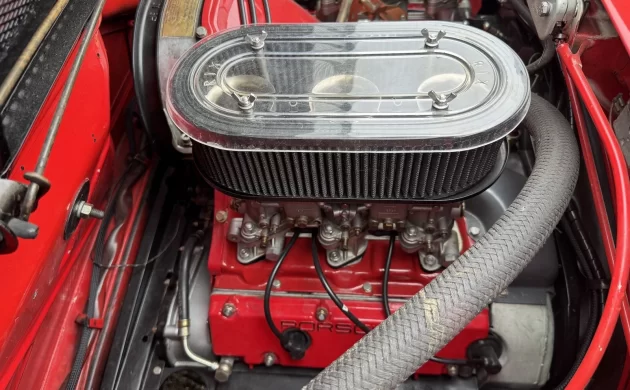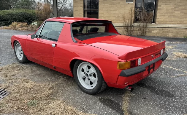 The good news is the rest of the 914 more or less stayed the same, so if you do embark on a swap project, you don’t have to rebuild the entire car. The seller notes that the project took on a slight outlaw vibe, with an aggressive stance accented by larger Fuchs-style wheels, a lowered suspension, and details that he associates with the stillborn Porsche 916 concept – a widebody race car based on the 914 that never saw production. The all-red paint job is an interesting choice, with the targa top, bumpers, and rear spoiler all painted to match. It either looks great or makes you think they simply painted the car with little attention paid to masking, and while I know it mimics the 916, it can have the opposite effect. Perhaps some black undercoating on the rockers and lower sills would help to break things up visually.