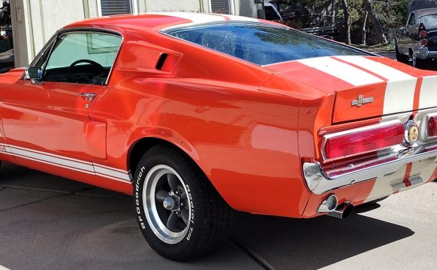 The seller followed a sensible path when creating this classic. They sourced a rust-free ’67 GT Fastback from Arizona, massaging the panels before adding the iconic Shelby fiberglass hood, trunk lid, and functional scoops. They then applied a pearl-based Orange that really pops. The finishing touches included the correct Shelby badges and a set of American Racing Torq Thrust wheels. The close-up shots reveal no evidence of orange peel or other imperfections. The paint is as flat as the seller claims, and the exterior shines like a mirror. The contrasting White stripes are sharp, while the trim and glass appear perfect. The seller states that this Mustang has only covered around 370 miles since they completed the build, and the lack of cosmetic imperfections supports that claim.