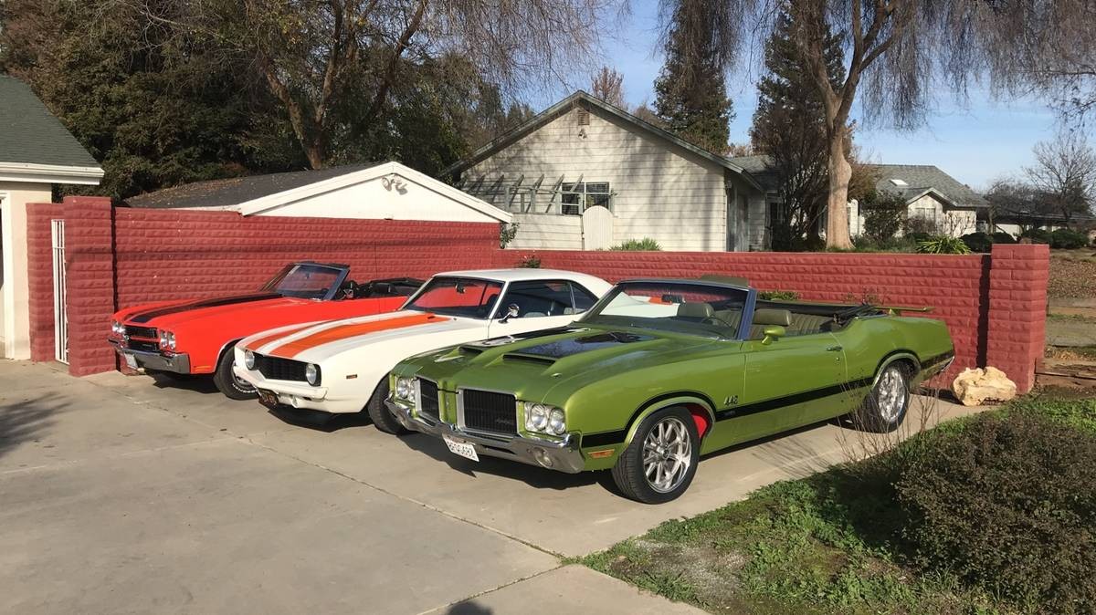 The Buick is my least favorite, 80’s junk IMHO. The other three are all clones of one sort or another. Without additional information, my choice would be the green Olds, assuming it has a W30 engine upgrade. Then the Chevelle, then the Camaro. I’m in California, so I can get a lot of use from convertibles. And where’s my Pontiac?!! I’d sell off the Buick if I bought the set and find a 70 Buick GS, clone of course. If these were truly factory built and not clones, they’d sell well north of 100 G’s each!