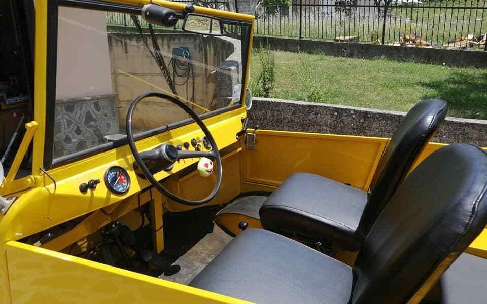 The engine is an 18-horsepower single-cylinder which was borrowed from the Fiat 500. While this might seem very anemic, the seller says with the gearing you drive as slow or as fast as needed and with the four-wheel-drive option, this car will go places no other microcar can.